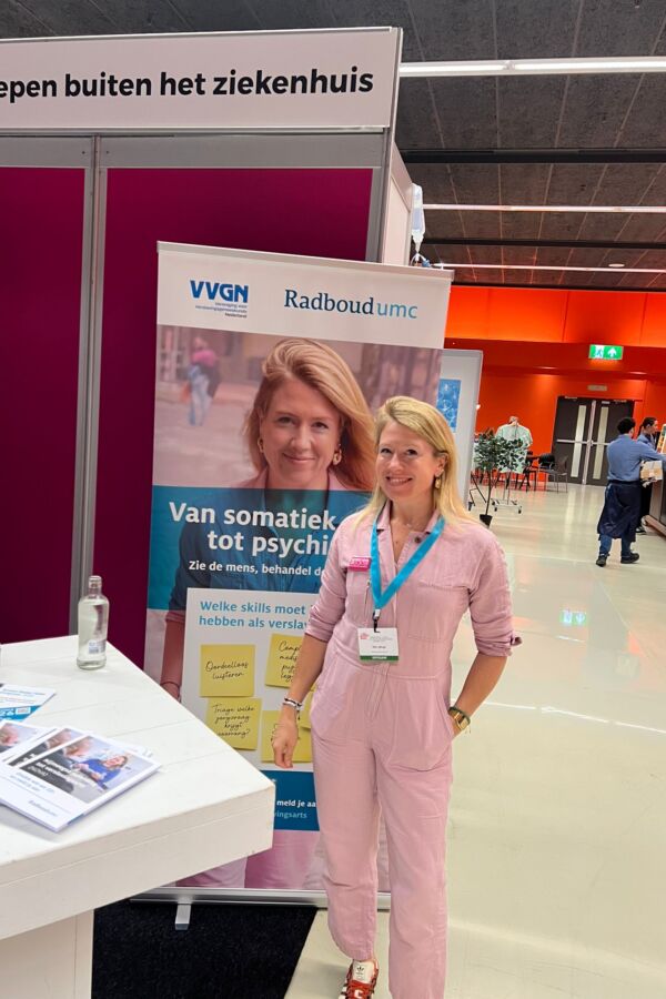 Ook dit jaar waren de extramurale vakgebieden goed vertegenwoordigd in de vorm van de Next Level-campagne, in stralend roze! Gesprekken over hoe de dag van een verslavingsarts eruitziet, waar een verslavingsarts voor staat en welke nevenactiviteiten bij het werk kunnen horen, wisten onze dokters (Fransje, Thecla, Jelmer en Niki) zo’n vijftig mensen te enthousiasmeren voor een meeloopdag in hun eigen regio.